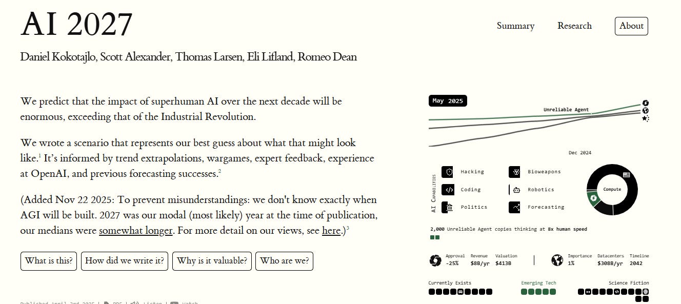 בתור התחלה, שווה לציין שעברה שנה ארוכה מאז ההרצאה הזו, ויש לנו קצת יותר נסיון עם AI וממילא גם יכולת לאמוד קצת יותר טוב האם לשם העולם הולך. עוד לפני שנשאל אם יש בעיות בשלושת ההנחות שלו, שווה לבדוק מה קורה בשטח. שרייבר דיבר כאן על טווח של 5-10 שנים, אז כמובן שלא נוכל להוכיח אם הוא צדק או טעה בינתיים, אבל בהחלט היו אנשים מרכזיים שסיפקו לנו חזונות של אופטימיות טכנולוגית שלא התקיימו. כך לדוגמה באותו חודש נובמבר ששרייבר הרצה בו, אמר סאם אלטמן שהוא מתרגש לקראת 2025, השנה שבה יגיע AGI, אינטלגנציה מלאכותית כללית. אבל לאחר שהשיק את GPT-5 באוגוסט השנה הוא נאלץ להודות שהוא אינו AGI, ובכלל - הציע שכדאי להפסיק להשתמש במונח הזה… באופן דומה, באפריל 2025 הושק פרוייקט מעמיק בשם “AI 2027“ שזמין לקריאה באינטרנט, שחזה שעד סוף 2027 נקבל אינטלגנציה מלאכותית שתדיח את האדם מראש הפירמידה האינטלקטואלית; אבל הנה, עוד לפני ש-2025 הצליחה להסתיים הודיע נציג של הפרוייקט, ככה ממש לפני כמה שבועות, שהם מעדכנים את התחזית והתאריך החדש הוא 2030. בהתכתשות הצפויה ברשת X טען אותו נציג, דניאל קוקוטאליו, שגם במאמר המקורי היה כתוב בהערות השוליים שיש טווח טעות מסויים בהערכות שלהם, שהם מעולם לא טענו שזה בוודאות מגיע ב-2027… אבל בואו נגיד, מעניין מאד שבחרתם לקרוא לפרוייקט כולו AI-2027. קצת מצחיק לטעון שהזזת התאריך ב-3 שנים זה לא משהו משמעותי בעיניכם.